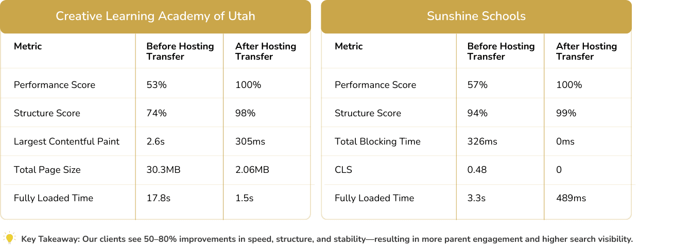 Clear click-to-call buttons make it easy for parents to connect instantly.